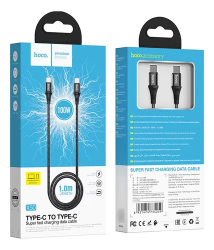 Cable Tipo C a Tipo C Hoco X50 1 mts. 100W cantidad